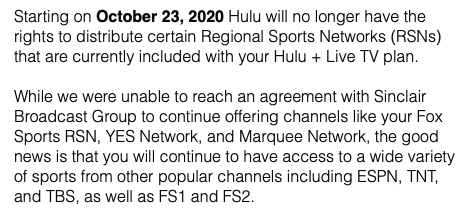 Hulu Drops Sinclair S Fox Regional Sports Networks Fierce Video